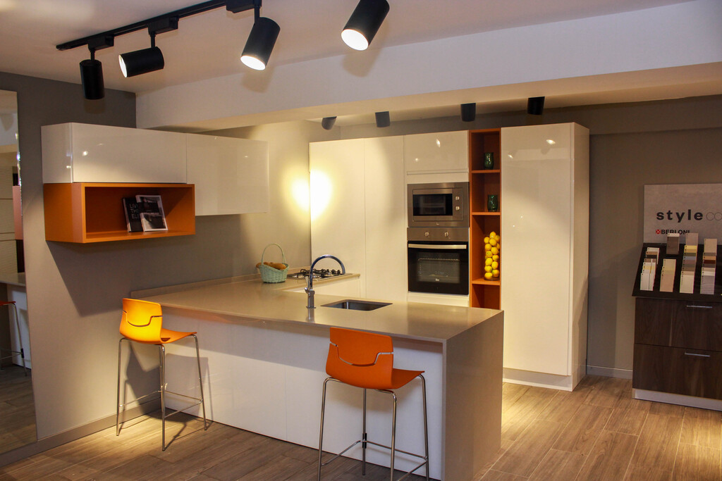 This Berloni kitchen reflects a perfect balance of elegance and functionality, designed for modern living with a refined aesthetic touch. The composition is centered around a stylish island that enhances both usability and visual appeal, creating a natural focal point within the space. The clean and sophisticated cabinetry is complemented by contrasting finishes and subtle textures, delivering a timeless yet contemporary look. Every detail, from the integrated appliances to the carefully selected materials, contributes to a seamless and harmonious design. Internally, the kitchen is equipped with high-quality accessories and drawer organizers, ensuring optimal storage efficiency and everyday convenience. The layout is thoughtfully designed to support both practical use and social interaction, making it ideal for modern lifestyles. Offered as a complete set as displayed, this kitchen also allows for minor customization to suit specific space requirements.